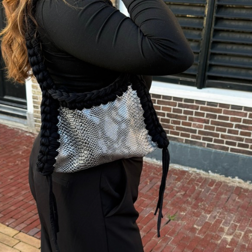 This is Juliette. She’s got that black silver metallic vibe and deep black yarn pulling it all together. She’s not here to blend in, she’s here to stand out. Iconic? Absolutely. She’s got that main character energy, just like you. This bag isn’t just an accessory, it’s a statement.