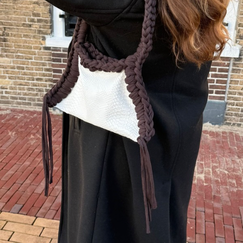 Chloe is all about that clean girl vibe, with her soft white snake skin and warm brown yarn. She’s the type to catch your eye quietly, but the boldness of her snake skin makes sure she’s never overlooked. Sweet, subtle, and effortlessly chic, Solèn is your go-to for a look that’s both fresh and unforgettable.